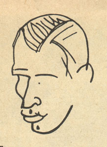 Портрет Потемкина работы Владимира Маяковского. Рисунок был сделан с натуры во время одного из выступлений поэта-сатириконца. |