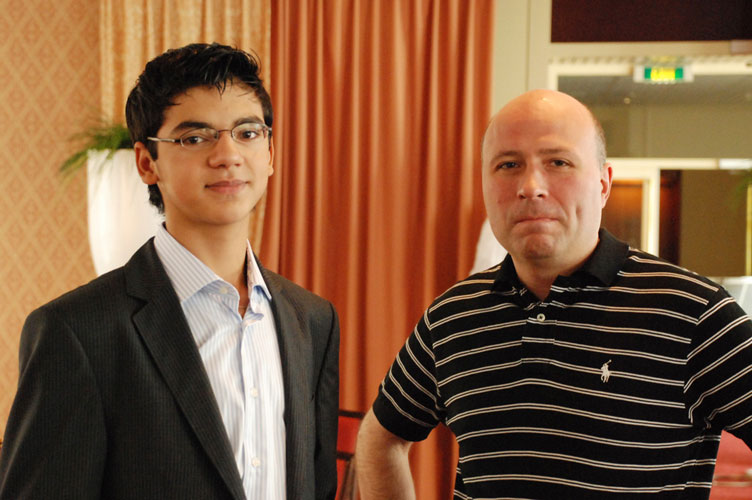 Хикару Накамура и Дэвид Хауэлл. Справа от каждого – их секунданты Крис Литтлджон и Стивен Гордон. |