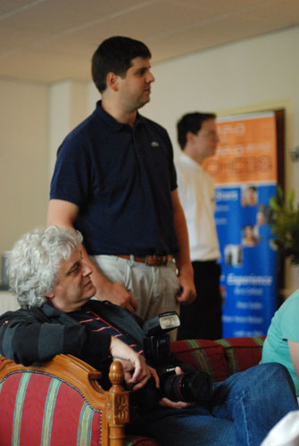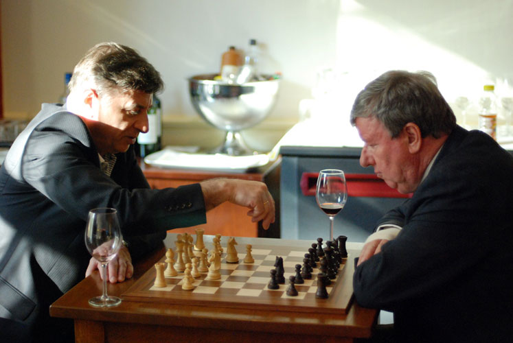 Напротив Любоевича – отец Йеруна Пикета, увлеченный шахматист, когда-то играл в первенстве Голландии. Очевидно, Любо в приватном порядке демонстрирует свою победу над Со. С Хауэллом дебют был тот же, но не будет же уважающий себя гроссмейстер показывать проигранную партию! |