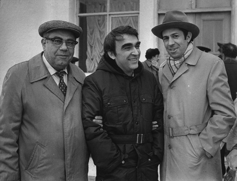 19 ноября 1985 года. Бакинский аэропорт. Встреча чемпиона мира Гарри Каспарова. Слева направо: Эдуард Асриян (брат автора статьи, известный в прошлом спортивный комментатор), Александр Шакаров (тренер Каспарова) и Валерий Асриян. Фото А.Тавакалова (Азеринформ). |