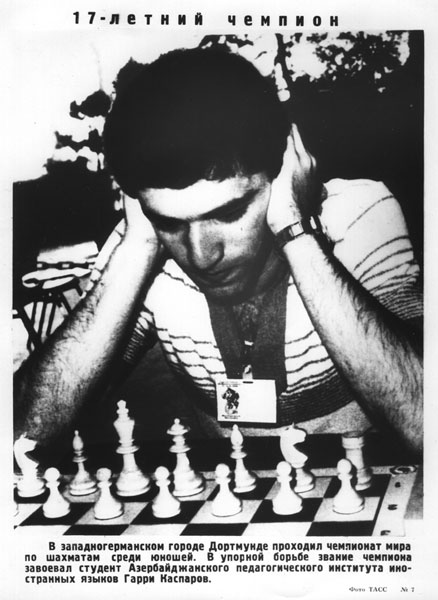 Наши шахматные пути больше не пересекались, зато примерно тогда я опубликовал свою первую заметку о нем в республиканской газете «Спорт». Называлась она «10-летний ученик экс-чемпиона мира» и сообщала о том, что юный бакинец принят в заочную шахматную школу Михаила Ботвинника. Кстати, Приворотский вспоминает, что пригласил Гарика в школу Ботвинника тогдашний наставник юношеской сборной СССР, а впоследствии постоянный тренер Каспарова мастер Александр Никитин, увидев, как Гарик в 1973 году на Всесоюзных молодежных Играх в Вильнюсе на равных играет с сильнейшими юниорами страны, превосходящими его по возрасту на 4–5 лет.