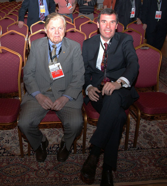 На фото – Сильвио Данаилов с нобелевским лауреатом Робертом Манделом, его личным гостем на матче. |