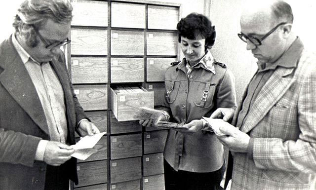 В картотеке ЦШК с Анатолием Быховским и Владимиром Антошиным. Москва, 1980 г. |