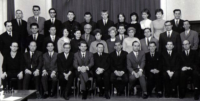 Участники матча РСФСР – Венгрия, Будапешт 1967 г. В первом ряду крайний слева Анатолий Лейн, 3 – Лев Полугаевский, 5 – Борис Спасский, 7 – Игорь Бондаревский, далее Лайош Портиш и Рашид Нежметдинов, крайний справа Владимир Антошин. Во втором ряду 4-я слева Римма Билунова, 7 – Валентина Козловская. В третьем ряду 4-й слева – Евгений Свешников. |
