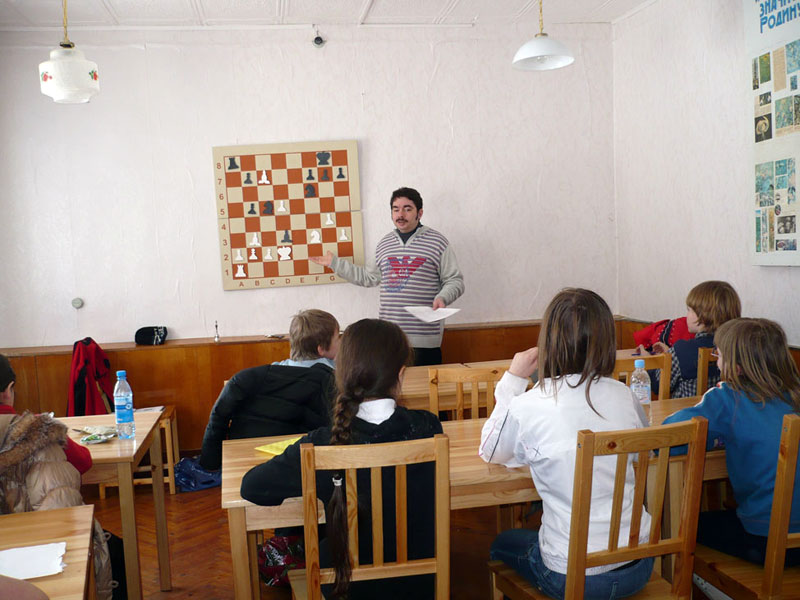 В первый же день состоялся товарищеский матч на 4-х досках с венгерской детской школой имени Г.Мароци. Он проходил с использованием современных компьютерных технологий (скайп). Опыта проведения подобного состязания не было, первые минуты вызывали опасение, состоится ли вообще матч? Но после того как К.В.Чернышову удалось связаться с венгерскими друзьями и устранить технические неполадки - игра началась. За нашу школу играло восемь человек (по два за доской). Диспетчером в команде был Вячеслав Михайлов, который голосом сообщал наши ходы венгерской команде и принимал ответные. После отведённого времени на игру было принято решение завершить дружеский матч вничью. Дети остались довольны от общения посредством шахмат со своими сверстниками из Венгрии и пожелали и впредь включать подобные мероприятия в план сессии.