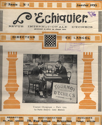 Титул обложки бельгийского шахматного журнала. Играют Колле и Матисон. Фото из архива С.Воронкова. |