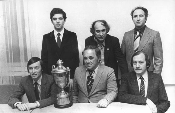 26.d8Q!! (2). Ход, потрясший Пршибыла: гордость позиции белых – проходная пешка «d» приносит себя в жертву! «Совершенно неожиданная идея удивительной красоты!» (Никитин). 26...Bxd8. Проигрывает 26...Rxd8 27.Rxd8+ Bxd8 ввиду 28.Qf7 Qd5 (иначе мат) 29.Qxd5 Nxd5 30.Rd1 или 28.Rd1! Qc8 29.Qf7 (Никитин). 27.Qc3+! Kg8 28.Rd7! Bf6 29.Qc4+. «Очень важный шах: на 29.Qg3?? последовало бы 29...Qe4! –+» (Пршибыл). 29...Kh8 30.Qf4! Темповая игра закончилась – белые забирают коня и остаются с лишним качеством за пешку и солидным позиционным перевесом. Но тут очередной мой соперник не выдержал напряжения... 30...Qa6? «Обыкновенный просмотр, ведущий к немедленному поражению. Жаль, потому что при 30...Bg7! черные сохраняли практические шансы на спасение» (Пршибыл). Действительно, в эндшпиле после 31.Qxc7 Qxc7 32.Rxc7 Bd4 мне надо было сыграть 33.Rf1! (но не 33.Rxa7? Rxf2! 34.Kh1 c4 35.Re1 Rf8 и c4-c3) 33...a6 (33...a5 34.a4!) 34.Rc6! (и нападение, и защита от c5-c4), чтобы все-таки довести партию до победы. Быстро проигрывало 34...Rf6 35.Rxf6 Bxf6 36.Re1 и Re6, а в случае 34...Rb8 35.Re1 или 34...b5 35.Rxa6 дальнейшее было бы делом техники. 31.Qh6. С неизбежным матом. Черные сдались. Время: 1.42–1.41. Партия с Пршибылом, наряду с одной из побед Карпова, была признана лучшей в 29-м томе «Информатора». «У каждого шахматиста есть своя любимая партия. У меня пока вот эта, – сказал я год спустя. – Однажды я даже назвал ее “моя вечнозеленая”. Люблю ее за то, что она такая красивая, с жертвой фигуры! Такую жертву иногда называют дискуссионной, но я и сейчас убежден, что она корректна». В итоге я показал лучший результат в команде (5,5 из 6), и мы вернулись из Швеции с золотыми медалями. Из западной прессы: «По всей вероятности, Каспаров станет в ближайшие годы одним из ведущих гроссмейстеров мира. Если не в следующем цикле, то через цикл этот высокоталантливый юноша примет непосредственное участие в борьбе за мировое первенство».