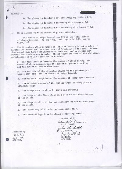 Страница одного из отчетов AAORG с подписями Ройбена Файна, Эдгара Ламара (крупного ученого-физика и теоретика исследования операций из Массачусетского технологического института) и их коллег-«морзистов»…