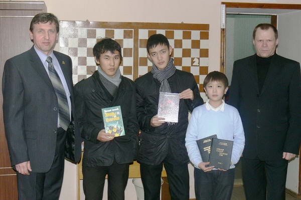 А победители получили от нас книжные призы. Двухтомником «Александр Галицкий - шахматный Гейне» был награжден Айс Бадмаев. Надеюсь, он почерпнет из этих книг красивые матовые позиции для своих будущих «вечнозеленых» партий!