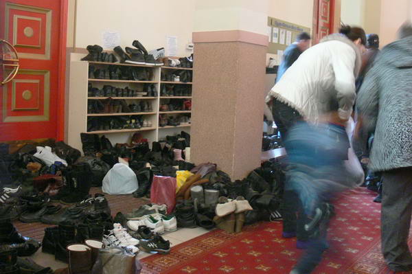 …Обилие обуви в прихожей храма крепко напугало нас. Как среди этой затейливой композиции из ботинок, тапочек, кроссовок, сапог и туфлей мы найдем опосля свою обувку? Не перепутает ли кто в суматохе свои ботинки с нашими? К счастью, страхи не оправдались. Обувь ждала нас в целости и сохранности на том месте, где мы ее и сняли!