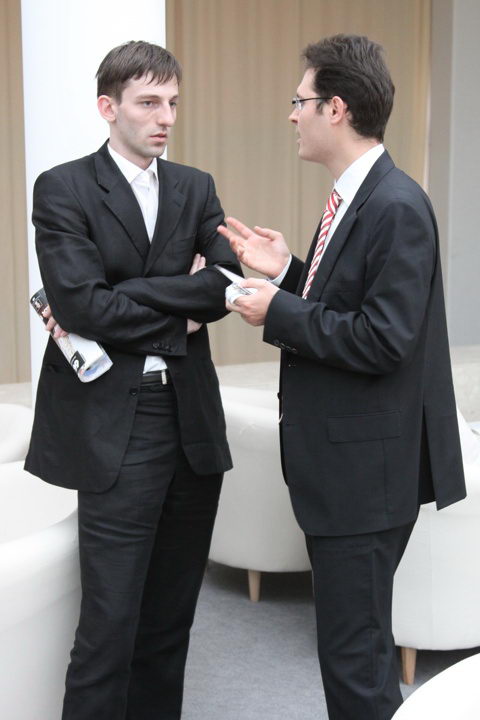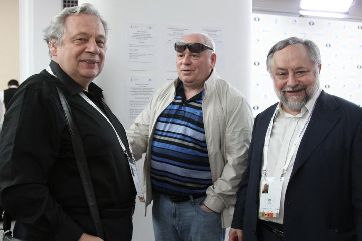 Появление соперников на сцене встретили горячими аплодисментами. Сперва для Гельфанда, потом - для Ананда. Специально прислушался, чтобы оценить, кого здесь поддерживают энергичней - Виши или Бориса. Показалось, что почти поровну.
