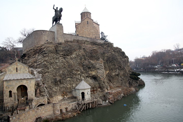 Памятник Вахтангу Горгасали, основавшему Тбилиси в V веке нашей эры. Легенда гласит, что Вахтанг со своей свитой охотился в этих краях и нашел теплый источник, после чего и решил на его месте основать город - новую столицу. Тбилиси с древнегрузинского так и переводится – «теплая (тбили) вода (си)».