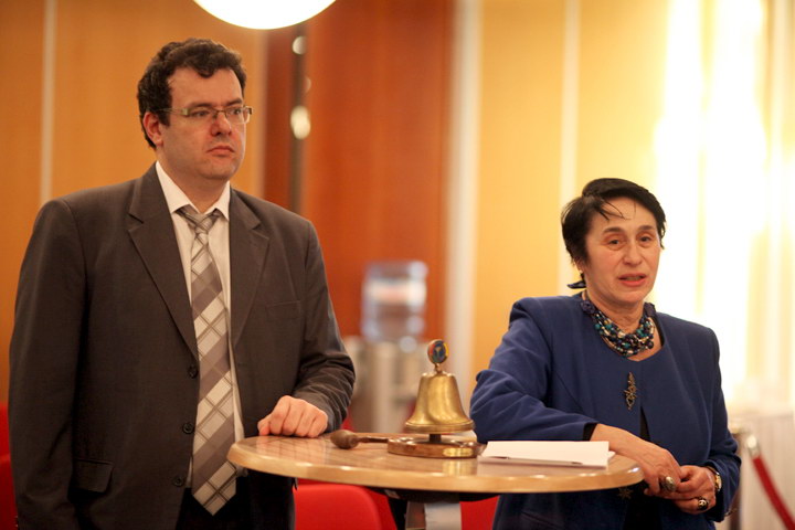 Президент Грузинской шахматной федерации Гия Гиоргадзе и чемпион мира по шахматной композиции Давид Гургенидзе заняли места в зрительном зале.
