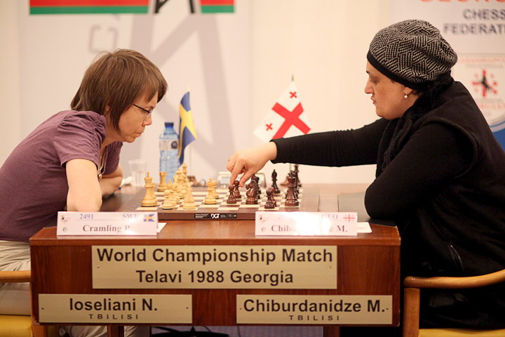 Все столы в турнирном в зале стилизованы под шахматные столы, за которыми разыгрывались матчи на первенство мира между грузинскими шахматистками. Майя Чибурданидзе наконец играет под своим именем, но в соперницы ей на этот раз досталась Пиа Крамлинг.