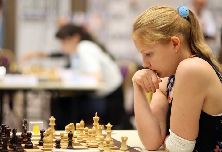 Чемпионка Европы Валентина Гунина «улыбается», даже когда думает над ходом. Поражения в 9-м и 10-м турах отбросили российскую шахматистку далеко от призовых мест.