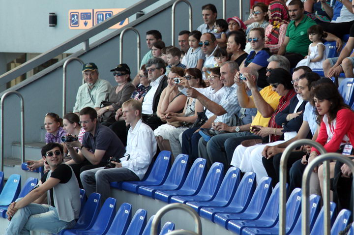 Некоторых участниц не испугало то, что представление в дельфинарии начиналось за час до партии – в первых рядах можно увидеть Валентину Гунину и Марию Музычук.