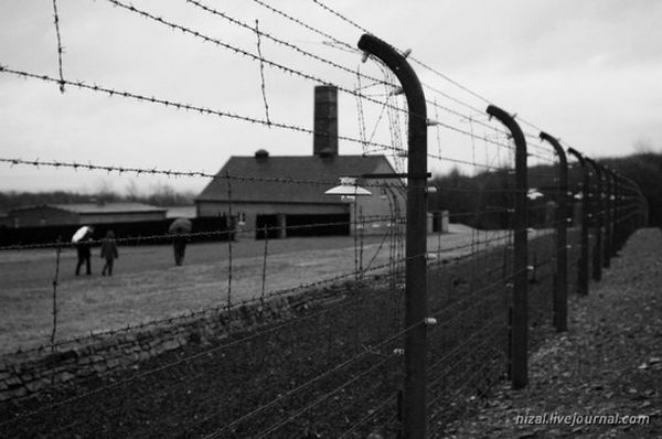 Бухенвальд был окружен двойным забором из колючей проволоки под высоким напряжением. Вдоль забора – два десятка сторожевых вышек с прожекторами и пулеметами. |
