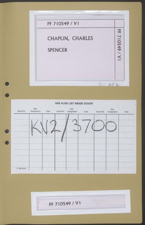 Титул чаплинского дела (по объему оно чуть больше 100 страниц, то есть в 20 раз тоньше фэбээровского досье), присланного автору из Национального архива Британии.