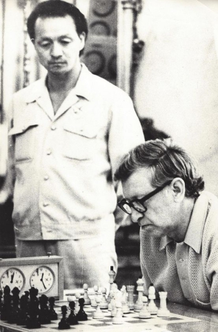 За игрой Смыслова наблюдает глава шахматной федерации Киргизии Акылбек Муратбеков