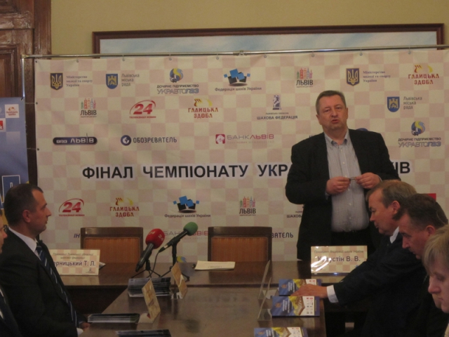 Президент Федерации шахмат Украины Виктор Капустин открывает турнир