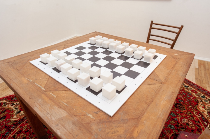 В Новом Крыле Дома Гоголя проходит выставка «Горизонталь превращения». Название проекта отсылает к одному из правил шахматной игры, согласно которому пешка, достигнув противоположного края доски, превращается в ферзя или иную фигуру.