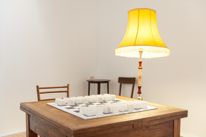 В Новом Крыле Дома Гоголя проходит выставка «Горизонталь превращения». Название проекта отсылает к одному из правил шахматной игры, согласно которому пешка, достигнув противоположного края доски, превращается в ферзя или иную фигуру.