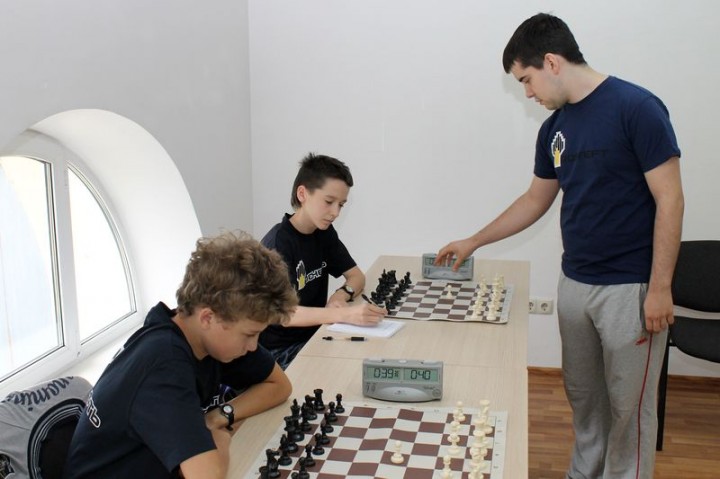 С Кириллом Козионовым из Ижевска гроссмейстер сыграл 1.d2-d4, а с Костей Савенковым начал игру королевской пешкой