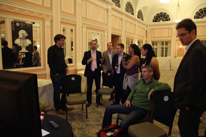 Игроки, журналисты и гости наблюдали за оставшимися партиями, наслаждаясь при этом отменным вином и шампанским, которое магическим образом появлялось после 6 вечера (через 4 часа после начала партий).