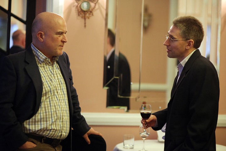 Основатель компании «Агон» и новый обладатель прав на проведение чемпионата мира по шахматам Эндрю Полсон с английским гроссмейстером Майклом Адамсом.