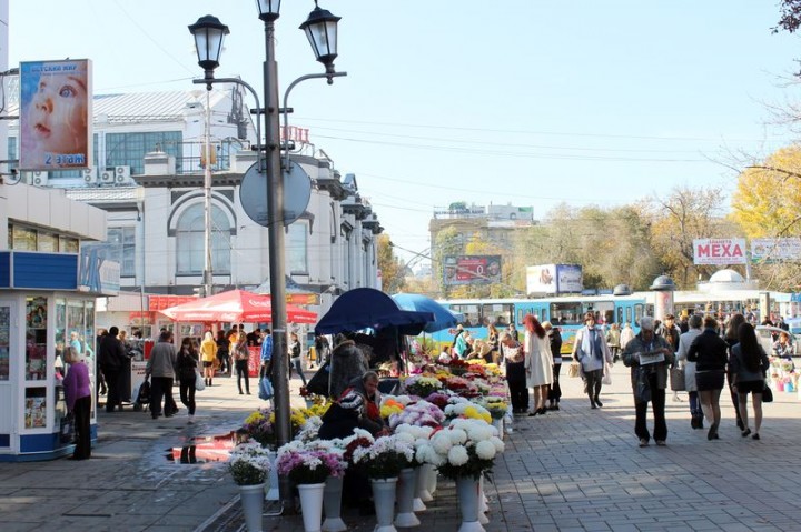 Цветочный базар в центре города – на пешеходном проспекте Кирова