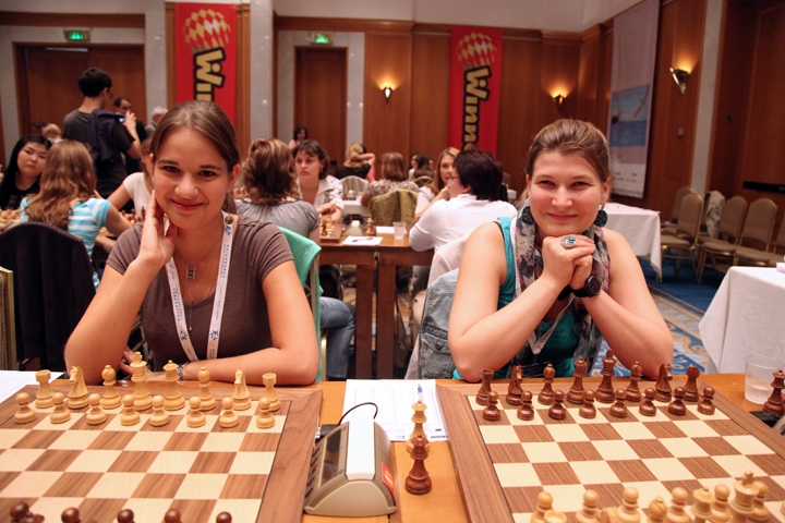 Алина Кашлинская и Анастасия Савина сражаются на 3-й и 4-й досках за команду «ШСМ-Наше Наследие».