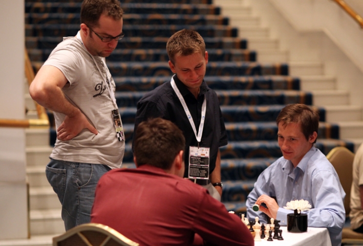 В прилегающем к залу помещении члены одной украинской сборной, играющие за разные клубы, анализируют партию Александра Моисеенко.