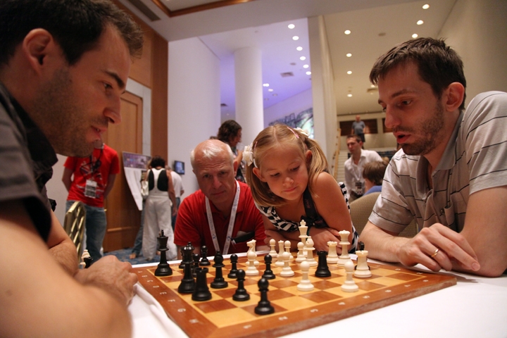 После окончания партии Грищук - Пеллетье Маша подключилась к анализу.