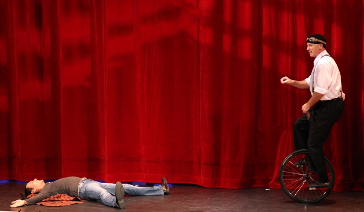 Самый рискованный номер с участием добровольца из зала прошел на той же сцене, где еще совсем недавно вручали медали. Конферансье долго прицеливался для выполнения опасного трюка и…