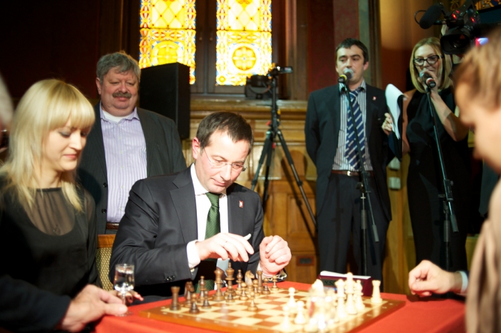 17 декабря в Центральном доме литераторов состоялся вечер, посвященный вручению премии «Каисса», учрежденной фондом «Наше наследие» и ШФМ за пропаганду и развитие шахмат в Москве. Среди награжденных – известные шахматисты, а также политики, бизнесмены, журналисты, которые помогают шахматам занять достойное место в жизни российской столицы. По замыслу учредителей, эта церемония станет ежегодной. Почетная гостья столицы, чемпионка мира Анна Ушенина получила премию как самый яркий зарубежный шахматист года. В своей речи Анна сказала: «Мне очень приятно получить такую премию. Хотела бы поблагодарить всех тех, кто столь самоотверженно и преданно поддерживает развитие шахмат в России и в Москве. Это просто фантастически. Именно шахматная школа, существующая в России, дала толчок для развития всему шахматному миру. И вдвойне приятно, что она продолжает развиваться и поддерживаться на государственном уровне». «Неформальная» часть вечера была посвящена дружескому блицу «двое на двое». Вначале Анна Ушенина и президент шахматной федерации Москвы Владимир Палихата играли против Валентины Гуниной и первого вице-спикера Госдумы РФ Александра Жукова, затем Палихата стал партнером чемпионки Европы, а чемпионка мира объединилась с президентом ФИДЕ Кирсаном Илюмжиновым.