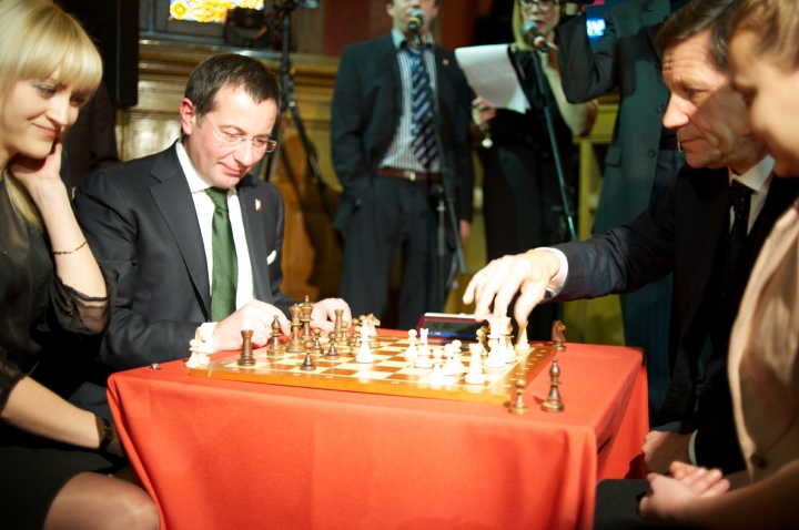 17 декабря в Центральном доме литераторов состоялся вечер, посвященный вручению премии «Каисса», учрежденной фондом «Наше наследие» и ШФМ за пропаганду и развитие шахмат в Москве. Среди награжденных – известные шахматисты, а также политики, бизнесмены, журналисты, которые помогают шахматам занять достойное место в жизни российской столицы. По замыслу учредителей, эта церемония станет ежегодной. Почетная гостья столицы, чемпионка мира Анна Ушенина получила премию как самый яркий зарубежный шахматист года. В своей речи Анна сказала: «Мне очень приятно получить такую премию. Хотела бы поблагодарить всех тех, кто столь самоотверженно и преданно поддерживает развитие шахмат в России и в Москве. Это просто фантастически. Именно шахматная школа, существующая в России, дала толчок для развития всему шахматному миру. И вдвойне приятно, что она продолжает развиваться и поддерживаться на государственном уровне». «Неформальная» часть вечера была посвящена дружескому блицу «двое на двое». Вначале Анна Ушенина и президент шахматной федерации Москвы Владимир Палихата играли против Валентины Гуниной и первого вице-спикера Госдумы РФ Александра Жукова, затем Палихата стал партнером чемпионки Европы, а чемпионка мира объединилась с президентом ФИДЕ Кирсаном Илюмжиновым.