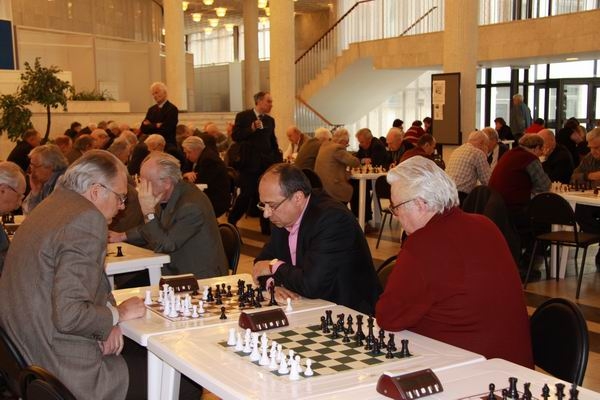 Ежегодный майский турнир неизменно проводится в просторных и уютных залах Российской академии государственной службы при Президенте РФ. Е.А.Васюков наблюдает за поединком Марголин – Некипелов.