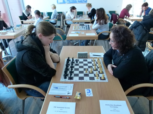 C 2010 г. я играю за очень дружную и позитивную команду «Bad Koenigshofen» в немецкой бундеслиге. За эти 3 года наш состав заметно усилился, и в прошлом году мы заняли 2-е место. Это фотография сделана во время матча против команды рейтинг-фаворита «Баден-Баден». Несмотря на раннее время тура (партии бундеслиги в воскресенье начинаются в 9 утра!) и мой несколько сонный вид, эту партию я выиграла, а матч закончился со счетом 3-3.