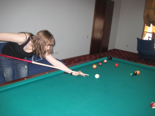 После сыгранной партии иногда хочется переключить внимание на что-то другое, например, поиграть в бильярд. Во время чемпионата Европы в Тбилиси (2011 г.) у нас с моей подругой и соседкой по комнате Нази Паикидзе такая возможность была ежедневно и даже бесплатно.