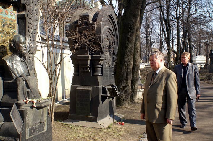 Эти фотографии были сделаны 5 лет тому назад. Анатолий Карпов ездил в Санкт-Петербург, ему вручали медаль Людвига Нобеля за выдающийся вклад в шахматы. Мне в редакции поручили сделать интервью с Карповым. Я сел в «Красную Стрелу», и мы поговорили с Анатолием Евгеньевичем. В поезде мы распили с Карповым и его другом Леонидом Монастырским, режиссером по профессии, бутылку коньяка. Я взял 100-грамовую бутыль на память, попросив Карпова оставить на ней автограф. …В Александро-Невской Лавре, где похоронены великие граждане Санкт-Петербурга, Карпов и Монастырский стояли у могильного памятника Федору Достоевскому, и каждый думал о чем-то своем... Ровно через год, весной 2008-го, Леонид Монастырский был осужден за подготовку покушения на своих соседей по квартире, бывшую жену, ее дочь и мужа дочери... Режиссер, по его словам, на самом деле не собирался никого убивать, а хотел привлечь внимание к своей проблеме...