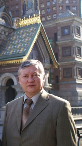 Эти фотографии были сделаны 5 лет тому назад. Анатолий Карпов ездил в Санкт-Петербург, ему вручали медаль Людвига Нобеля за выдающийся вклад в шахматы. Мне в редакции поручили сделать интервью с Карповым. Я сел в «Красную Стрелу», и мы поговорили с Анатолием Евгеньевичем. В поезде мы распили с Карповым и его другом Леонидом Монастырским, режиссером по профессии, бутылку коньяка. Я взял 100-грамовую бутыль на память, попросив Карпова оставить на ней автограф. …В Александро-Невской Лавре, где похоронены великие граждане Санкт-Петербурга, Карпов и Монастырский стояли у могильного памятника Федору Достоевскому, и каждый думал о чем-то своем... Ровно через год, весной 2008-го, Леонид Монастырский был осужден за подготовку покушения на своих соседей по квартире, бывшую жену, ее дочь и мужа дочери... Режиссер, по его словам, на самом деле не собирался никого убивать, а хотел привлечь внимание к своей проблеме...