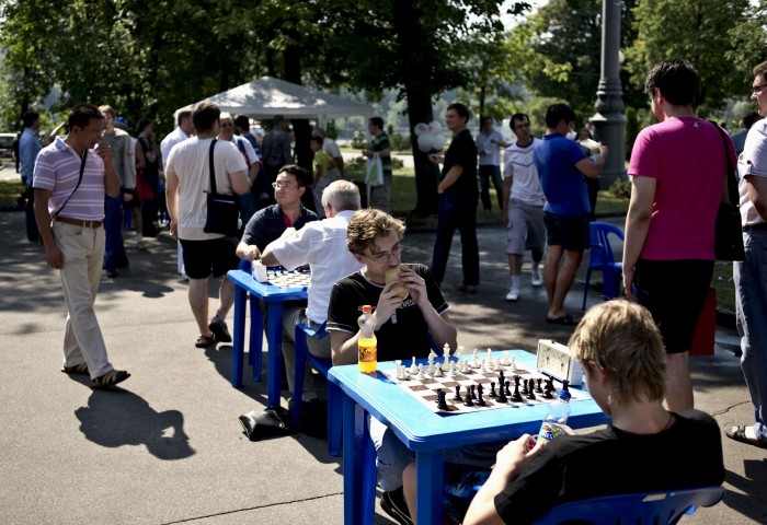 Сегодня в Лужниках состоялся праздник московского спорта. На шахматной площадке, расположившейся в сквере рядом с Престижной аллеей, прошли многочисленные турниры и конкурсы, а также сеансы одновременной игры Анастасии Савиной и Сергея Карякина. Их соперниками были юные шахматисты, серьезно подошедшие к ответственному испытанию.