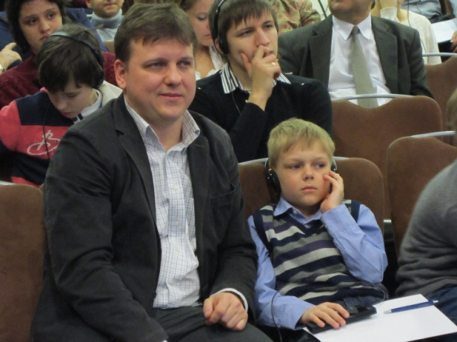На матче побывали многие известные шахматисты. Вот Владимир Баклан – заслуженный мастер спорта Украины, чемпион мира-2001 в составе национальной сборной. Рядом – его сын-третьеразрядник Кирилл, мечтающий пойти по стопам отца.