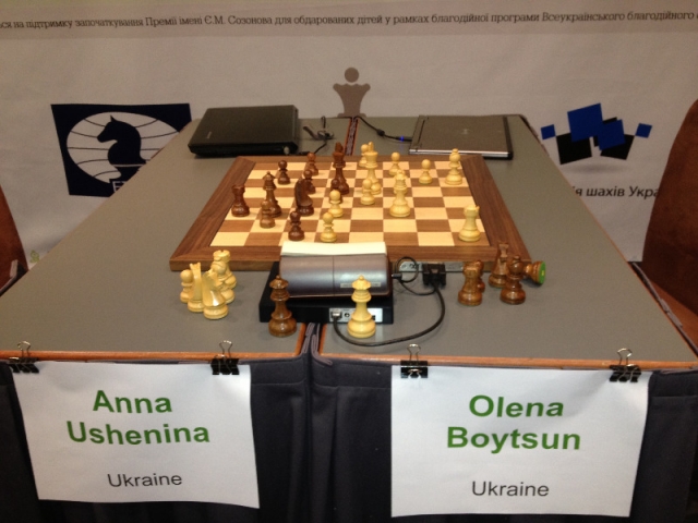 2 апреля в Киеве в шикарном конференц-зале отеля Radisson Blu состоялся матч по прогрессивным шахматам между чемпионкой мира международным гроссмейстером Анной Ушениной и главой правления благотворительного фонда «Детские шахматы» международным мастером Еленой Бойцун. Но журналисты, отбросив титулы и звания, сразу окрестили мероприятие как «Поединок Блондинки и Брюнетки». В ходу была и еще одна версия – «Битва красавиц». В общем, простора для фантазий хватало…