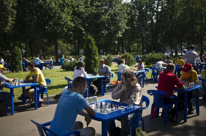 Сегодня в Лужниках состоялся праздник московского спорта. На шахматной площадке, расположившейся в сквере рядом с Престижной аллеей, прошли многочисленные турниры и конкурсы, а также сеансы одновременной игры Анастасии Савиной и Сергея Карякина. Их соперниками были юные шахматисты, серьезно подошедшие к ответственному испытанию.
