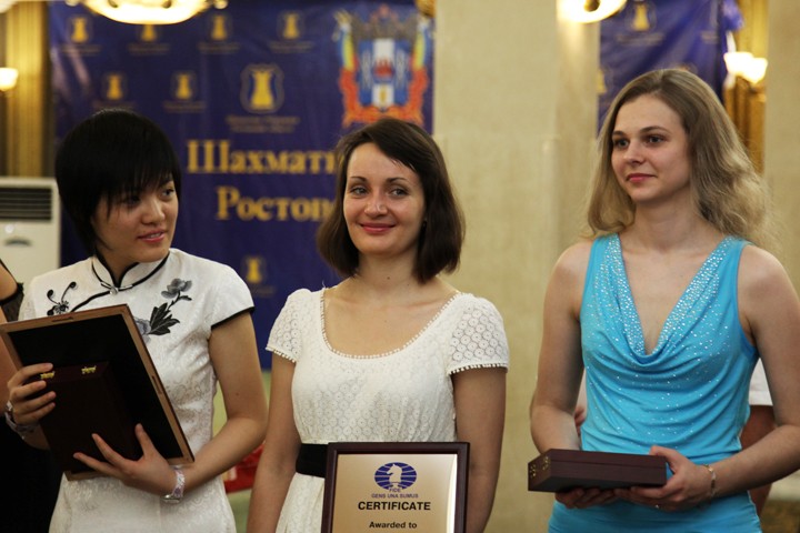 Первое выступление в Гран-при в Ростове-на-Дону в августе 2011 и дележ 3-4 места с Татьяной Косинцевой, на первом – Хоу Ифань, на втором – Катерина Лагно.