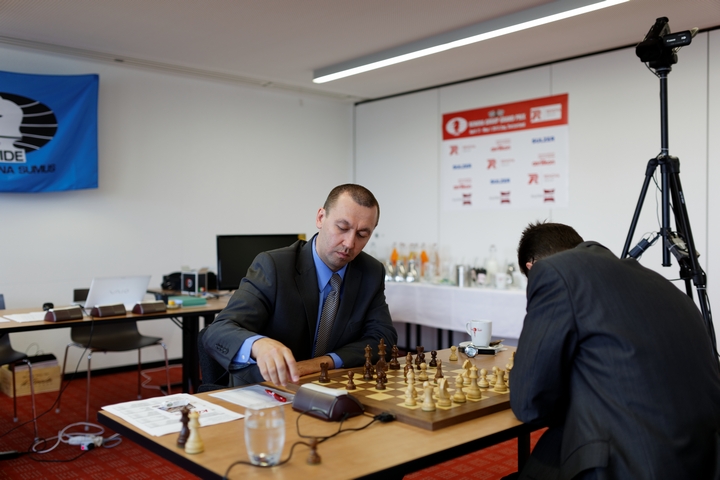 Немногочисленные зрители и половина участников турнира – в первой портретной галерее Александра МОТЫЛЕВА. Съемка в турнирном зале разрешена в течение первых пяти минут, поэтому наблюдать героев мы можем лишь в начале их рабочего дня.