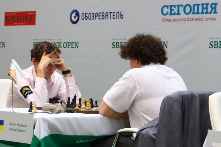 На старте турнира самой яркой получилась партия двух воспитанников украинских шахмат – экс-крымчанина, а ныне москвича Сергея Карякина и харьковчанина Антона Коробова, кстати, действующего чемпиона Украины.