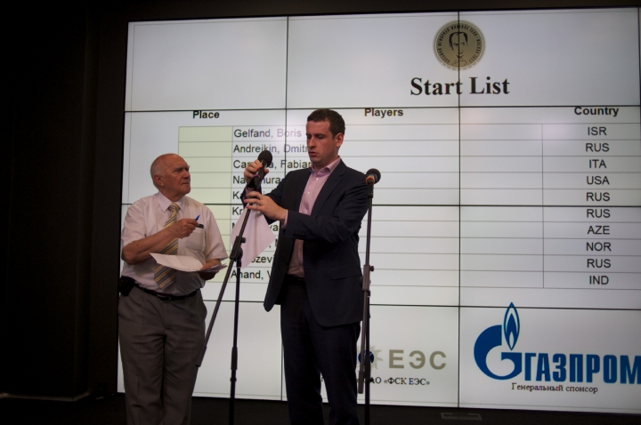 Открытие Мемориала началось с краткого вступительного слова организаторов и судей. Затем участники сыграли блицтурнир, в соответствии с итогами которого выбирали себе номера в таблице главного состязания. Первое место занял Накамура, на втором – Ананд, на третьем – Крамник. По окончании процедуры жеребьевки Магнусу Карлсену была вручена статуэтка «Оскара».