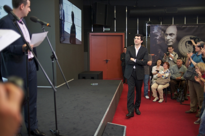 Открытие Мемориала началось с краткого вступительного слова организаторов и судей. Затем участники сыграли блицтурнир, в соответствии с итогами которого выбирали себе номера в таблице главного состязания. Первое место занял Накамура, на втором – Ананд, на третьем – Крамник. По окончании процедуры жеребьевки Магнусу Карлсену была вручена статуэтка «Оскара».